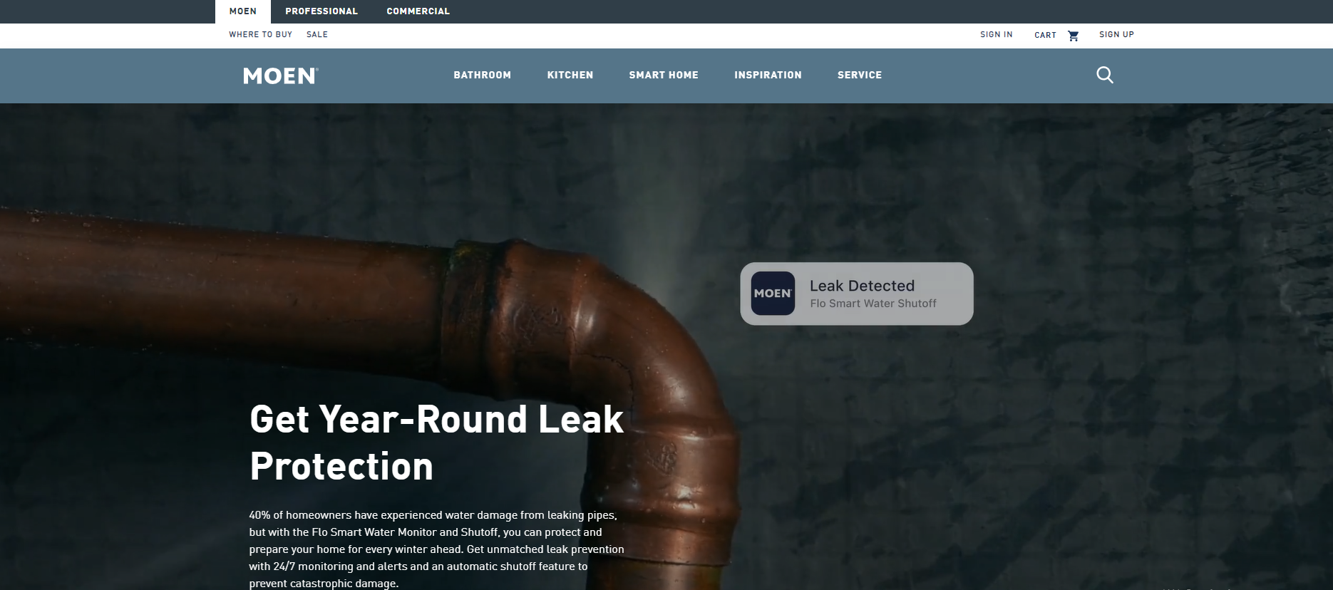Company Background and Advantage: Moen's main advantage is its reputation as America's finest faucet and tub manufacturer. It has more than 70 showrooms in the United States and an extensive network of customers in more than 50 countries.