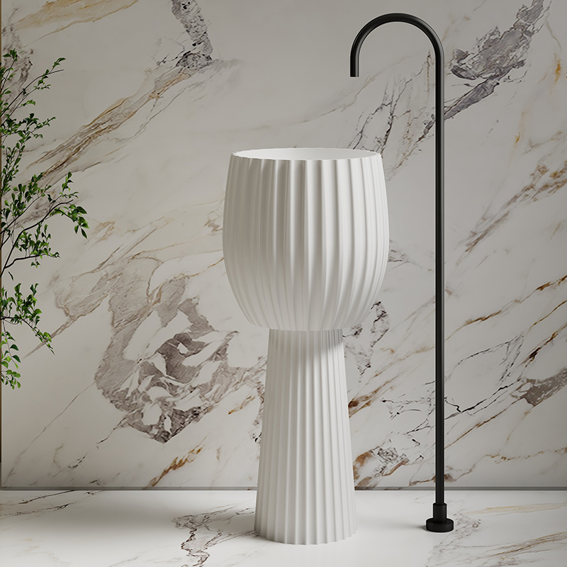 Solid surface pedestal sinks are a popular choice for modern bathrooms due to their sleek, space-saving design. They consist of a basin supported by a pedestal, which hides the plumbing and provides a clean, streamlined look. MOQ:10 Pieces Per Model